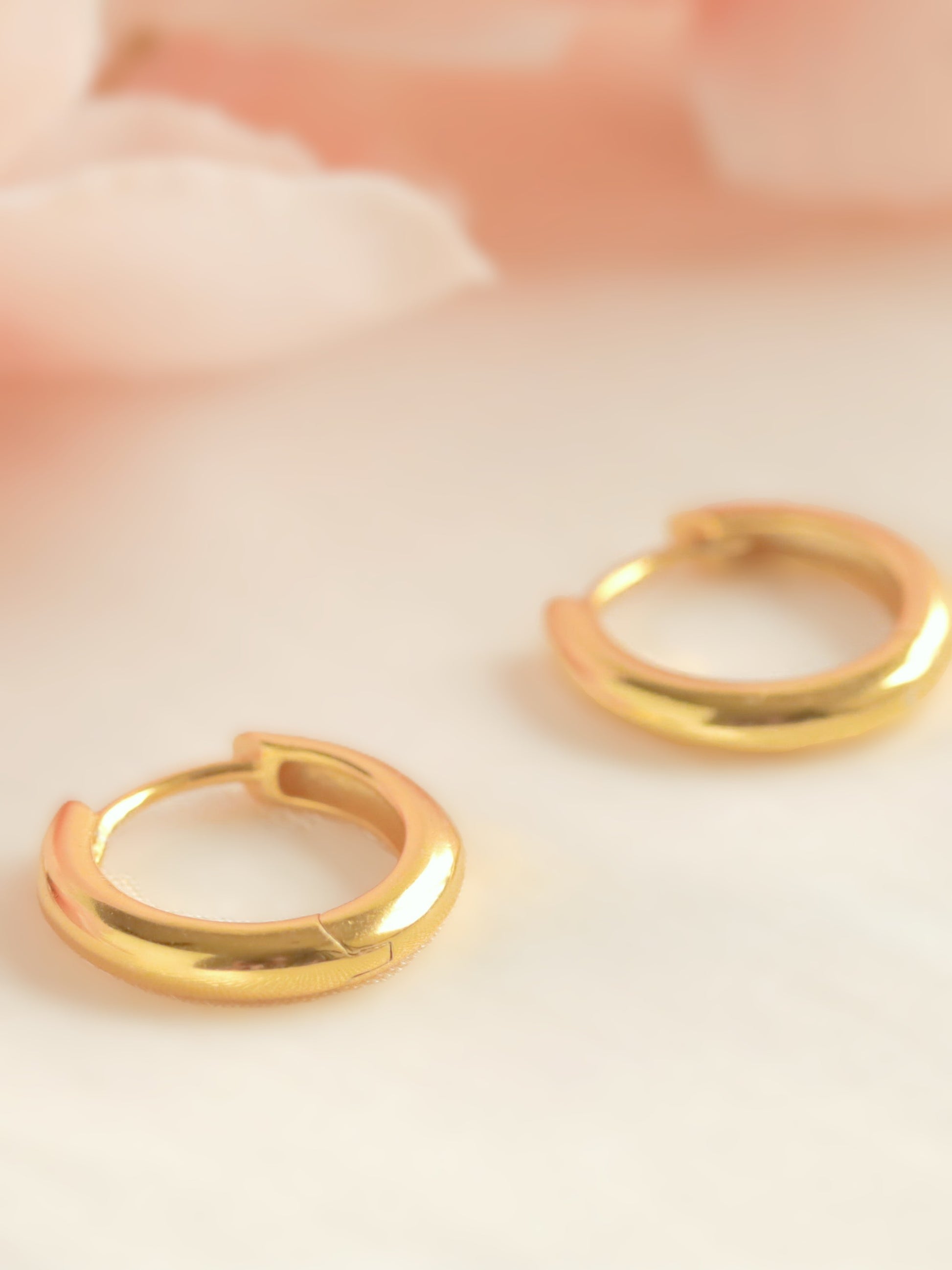 These everyday wear hoops offer a simple and timeless design that’s perfect for daily use. Their versatile style effortlessly complements any outfit, making them a go-to accessory for a touch of understated elegance.