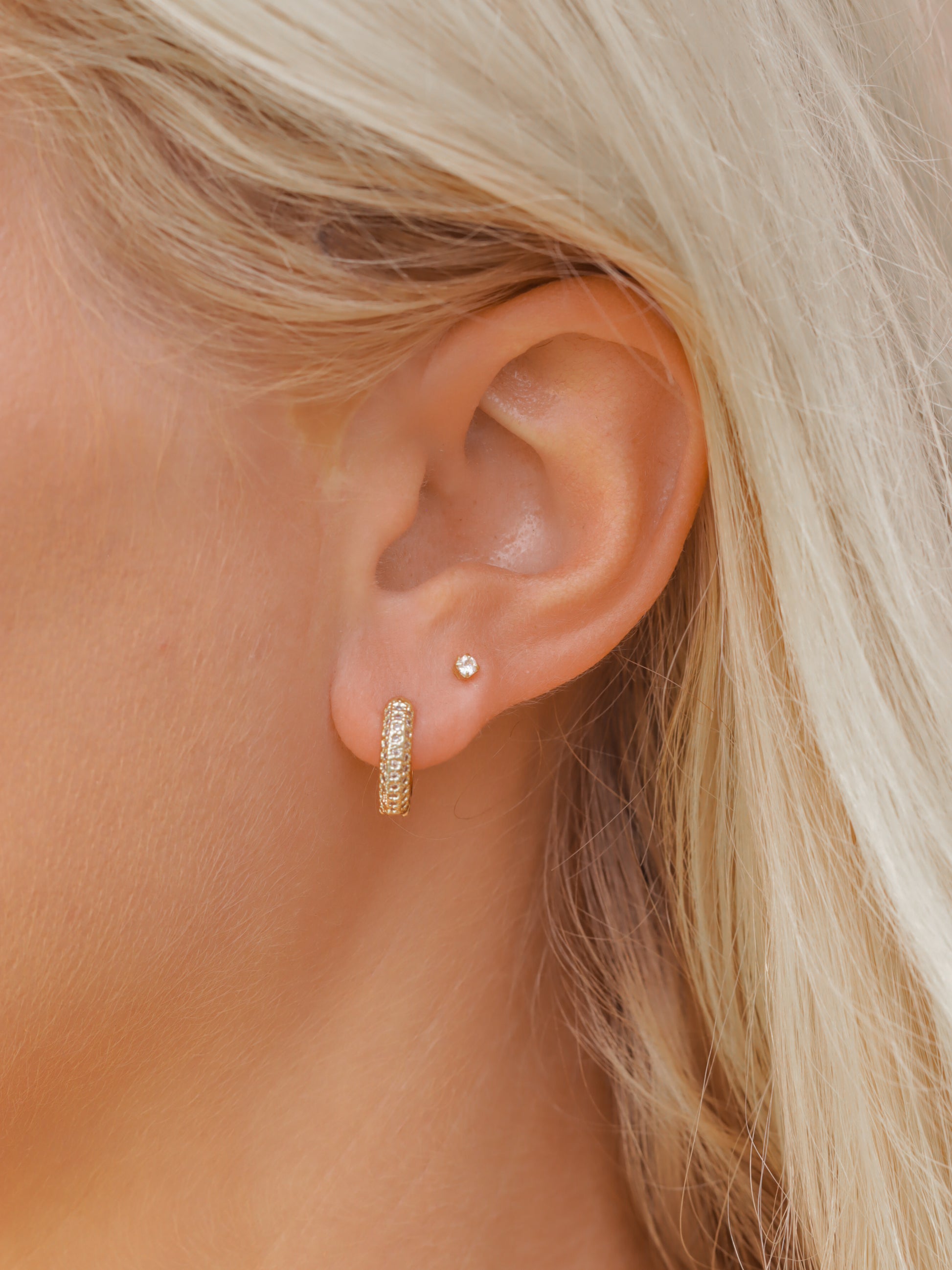 These simple diamond hoops are perfect for everyday wear, offering a subtle yet sophisticated sparkle. Their classic design, paired with the brilliance of diamonds, makes them an elegant and versatile choice that effortlessly enhances any look.