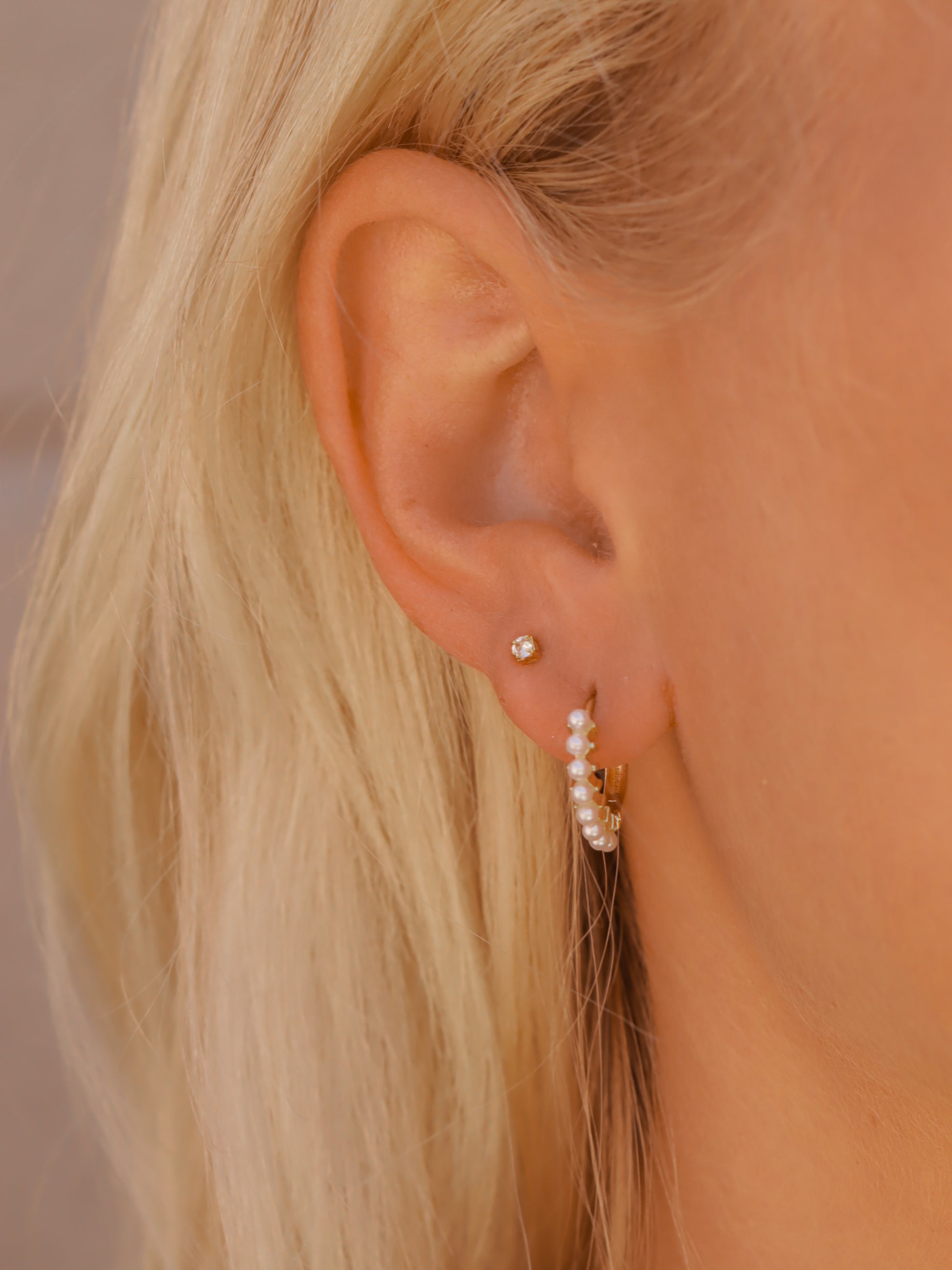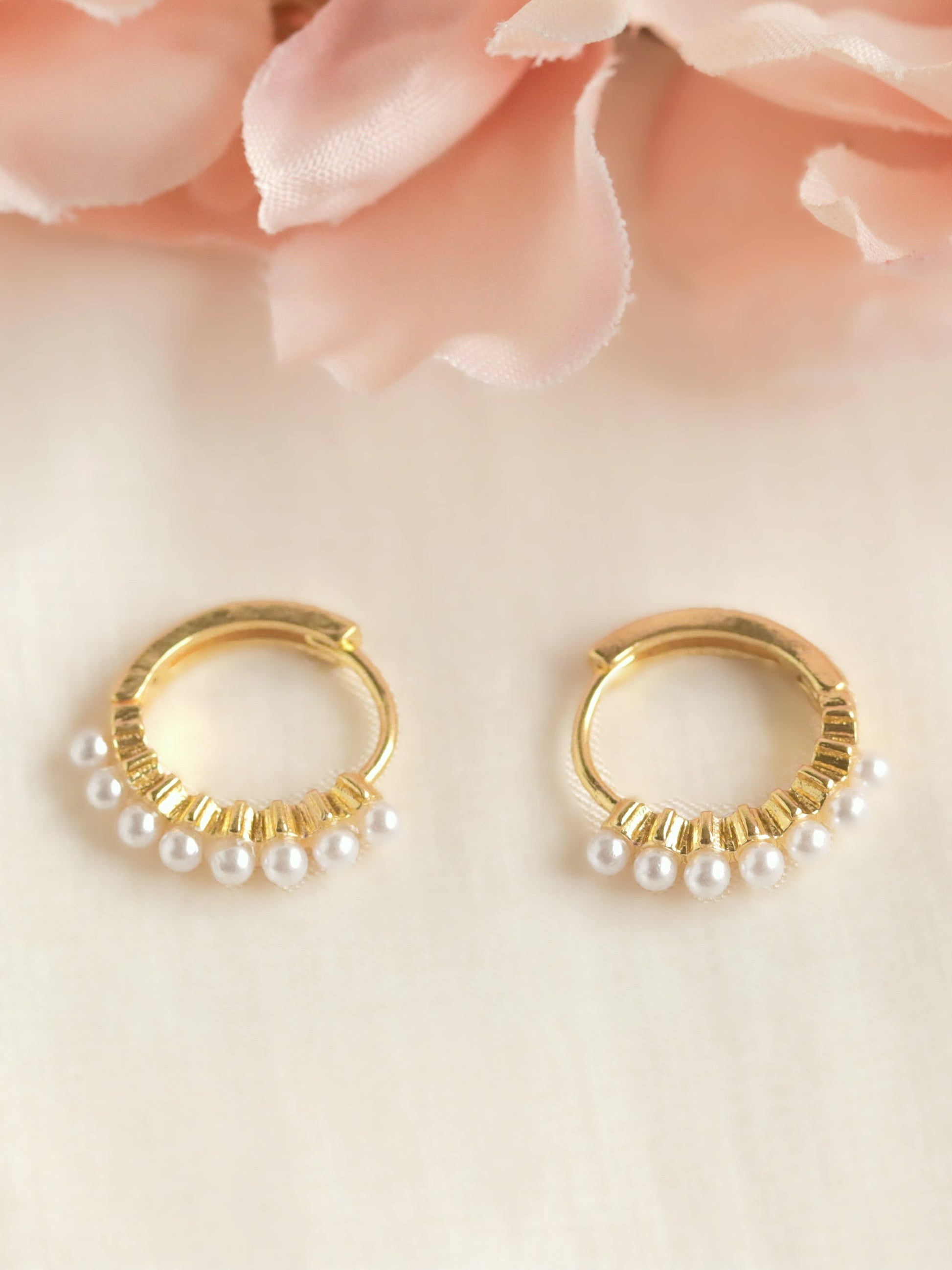 These classic pearl hoops feature timeless elegance with their smooth, lustrous pearls set in a simple hoop design. Perfect for adding a touch of sophistication and grace to any outfit, they’re versatile enough for both everyday wear and special occasions.