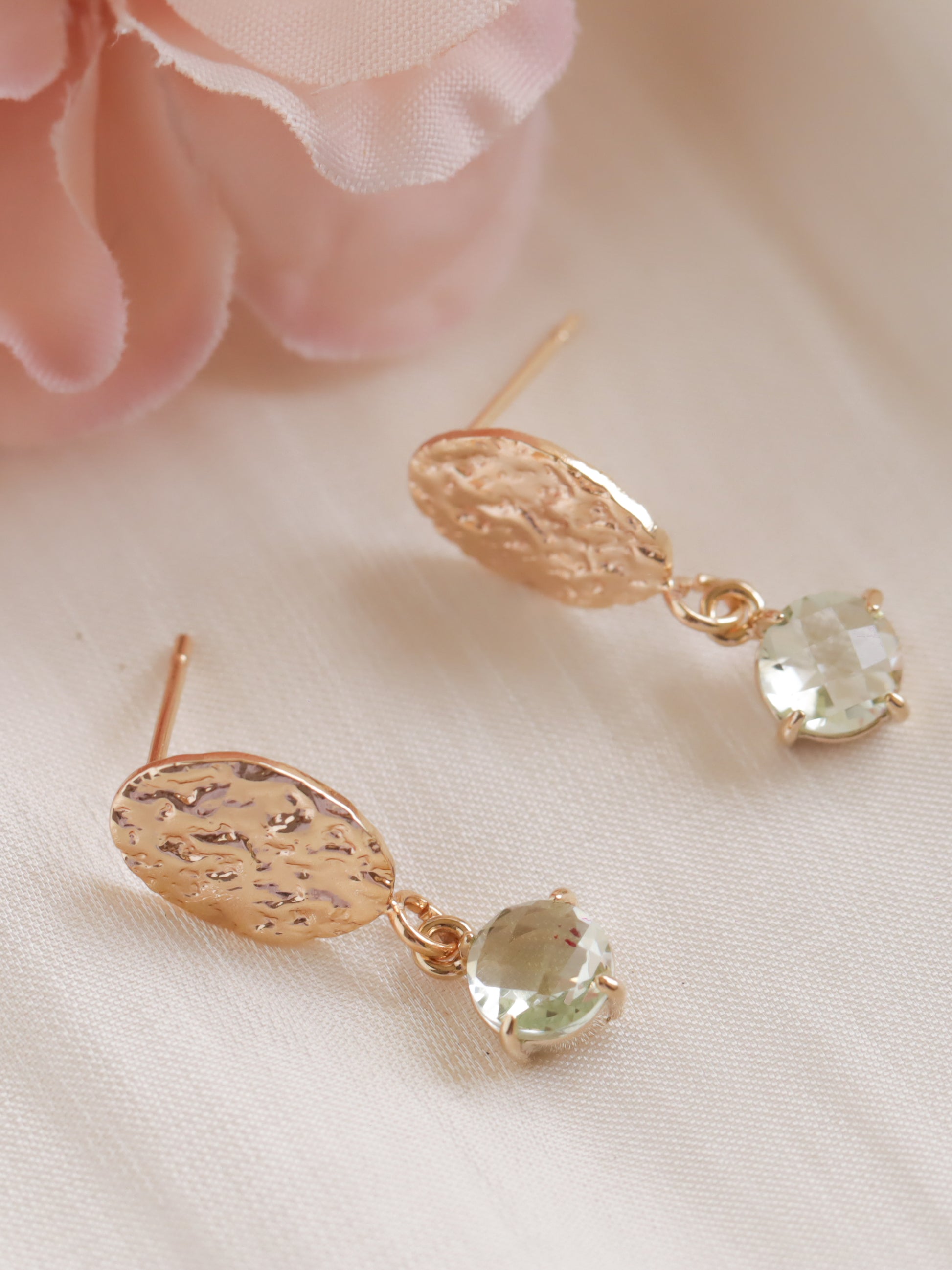 These textured stud earrings feature a vibrant peridot stone set against a richly textured backdrop. The unique surface design adds depth and character, while the peridot's fresh green hue brings a pop of color. Perfect for adding a touch of understated elegance to your everyday look.