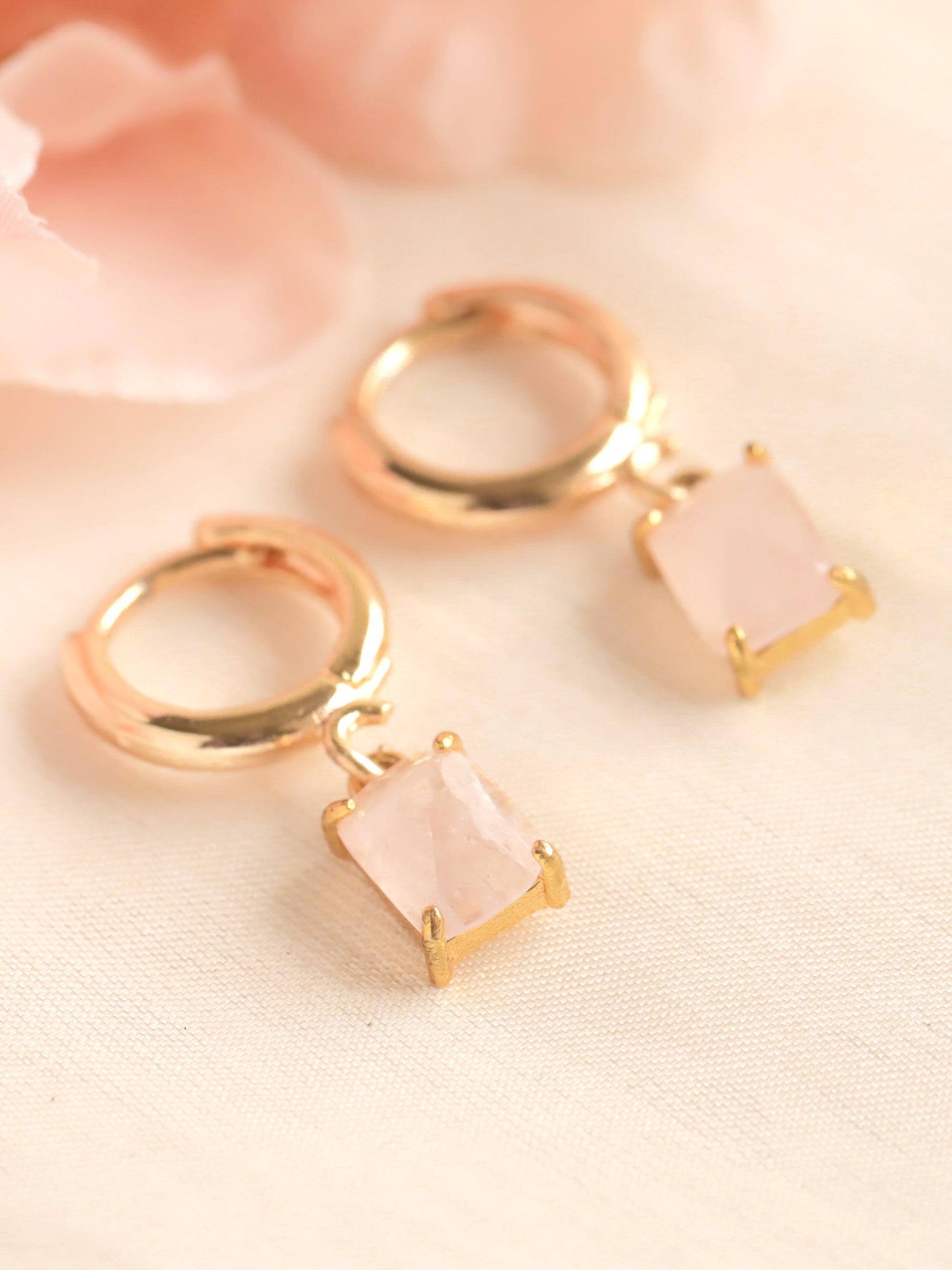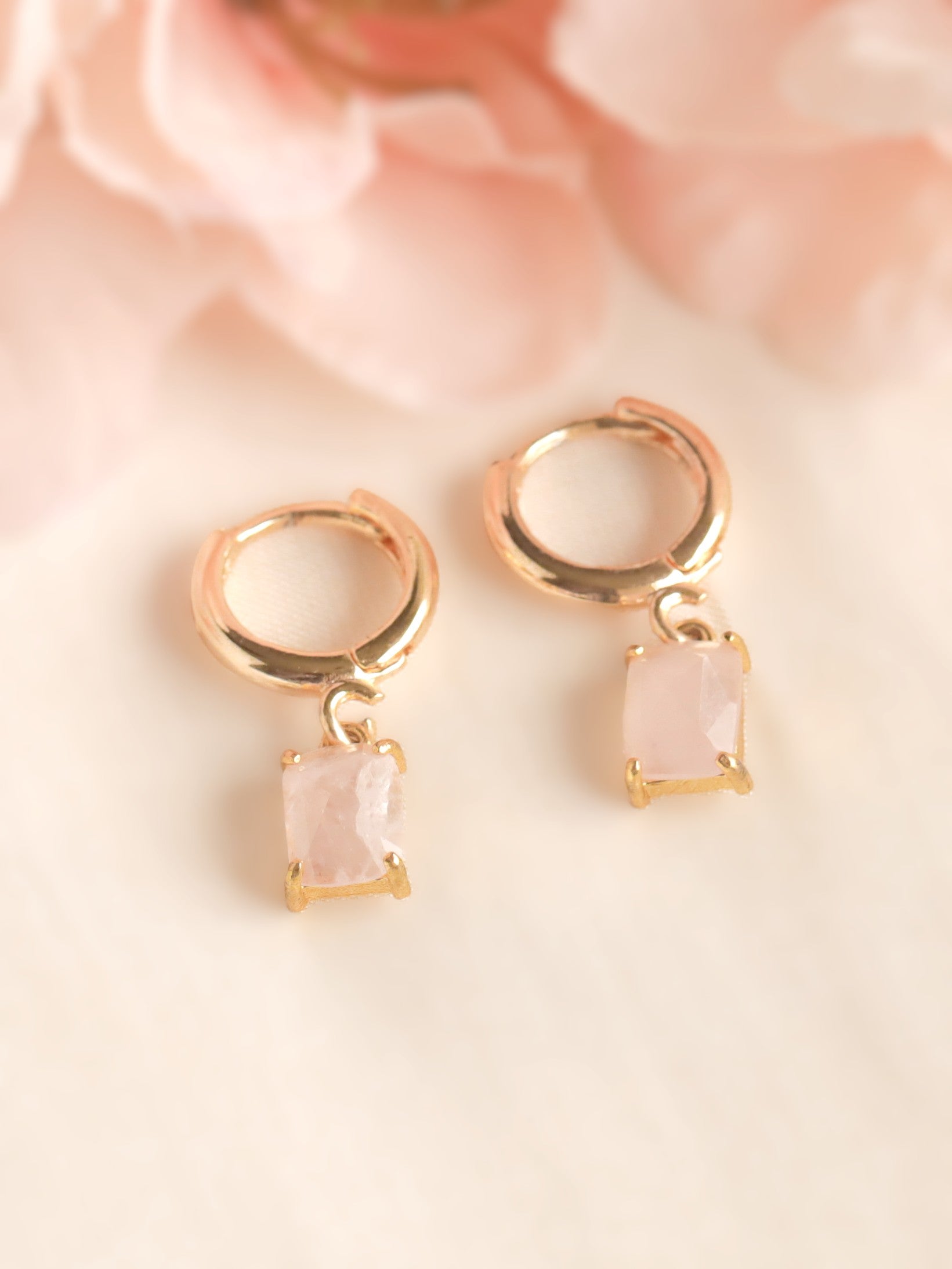 These rose quartz earrings feature soft, pastel pink stones that exude a gentle, romantic charm. The soothing hue of the rose quartz makes them a versatile and elegant accessory, perfect for adding a touch of warmth and femininity to both everyday wear and special occasions.