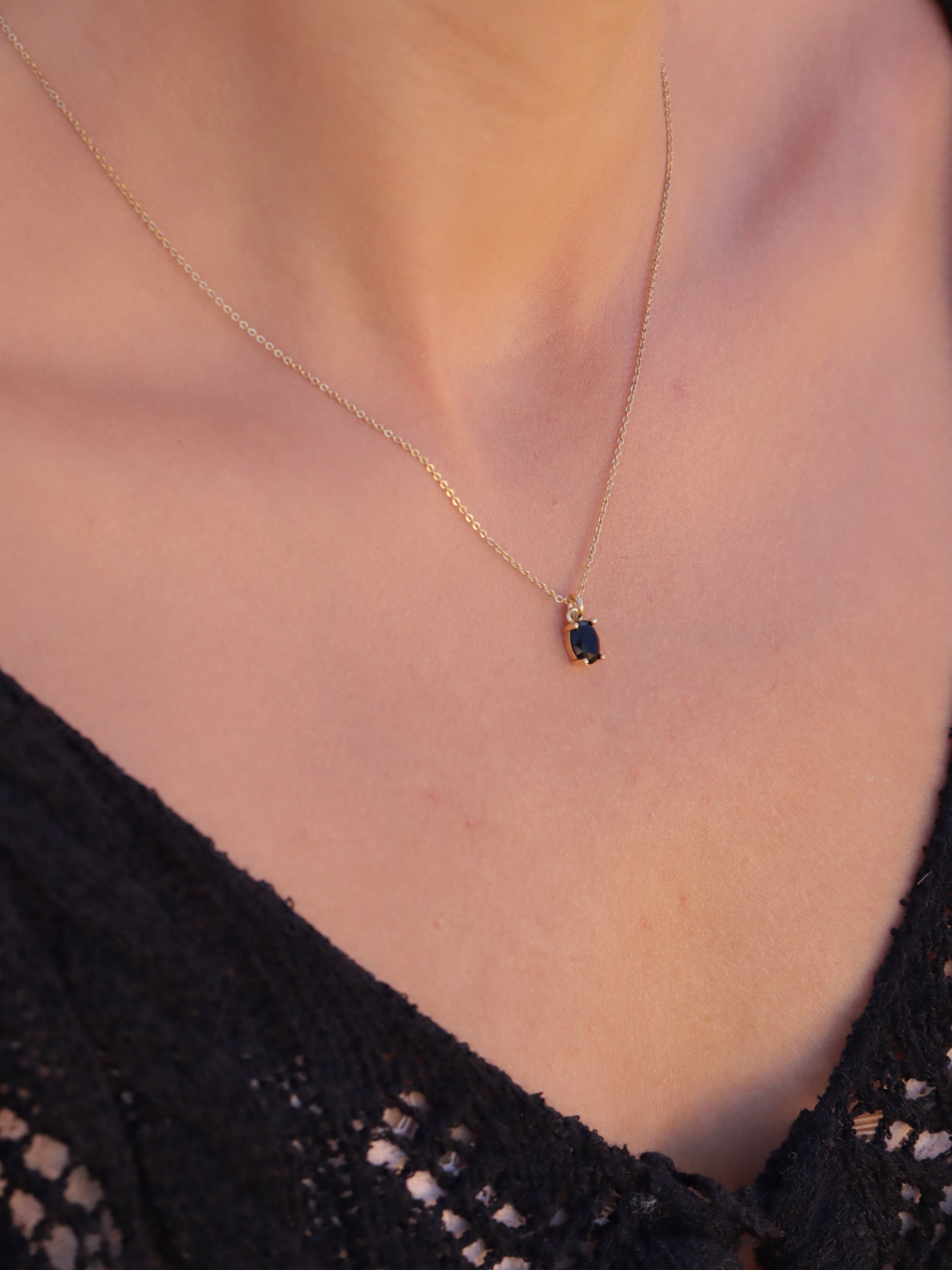 This necklace features a stunning sapphire or tourmaline stone, offering a rich, vibrant pop of color. Its elegant design is perfect for everyday wear, adding a touch of sophistication and charm to any outfit with a simple yet striking gemstone.