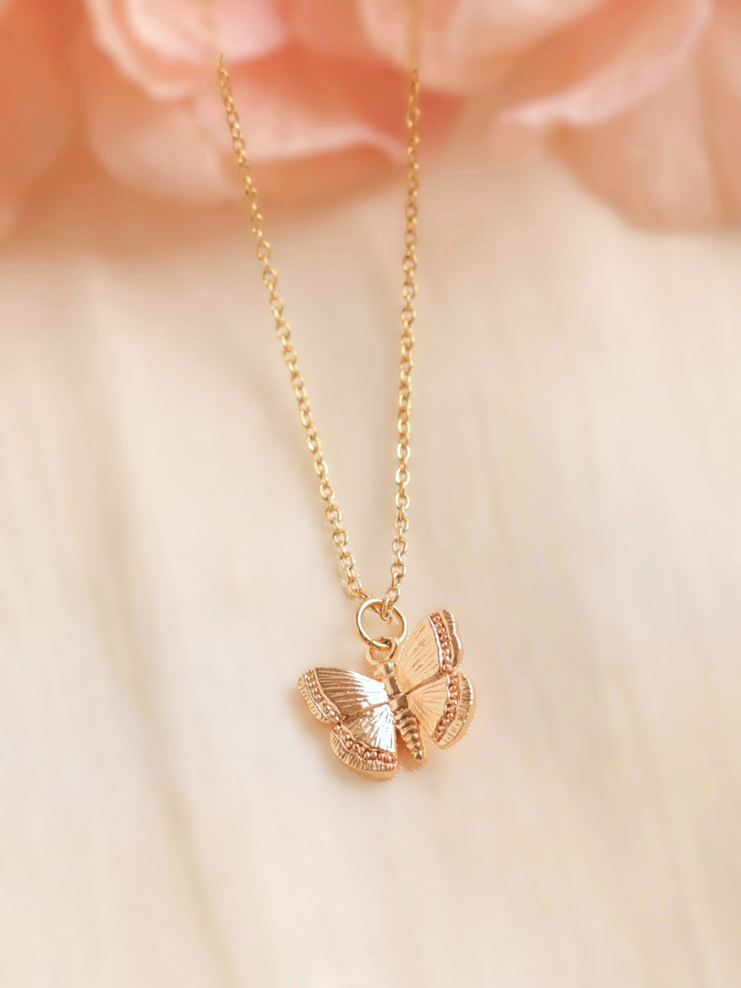 This butterfly necklace features a delicate pendant that adds a touch of charm to any outfit. Its simple design makes it perfect for everyday wear, bringing a subtle hint of nature-inspired beauty to your look.