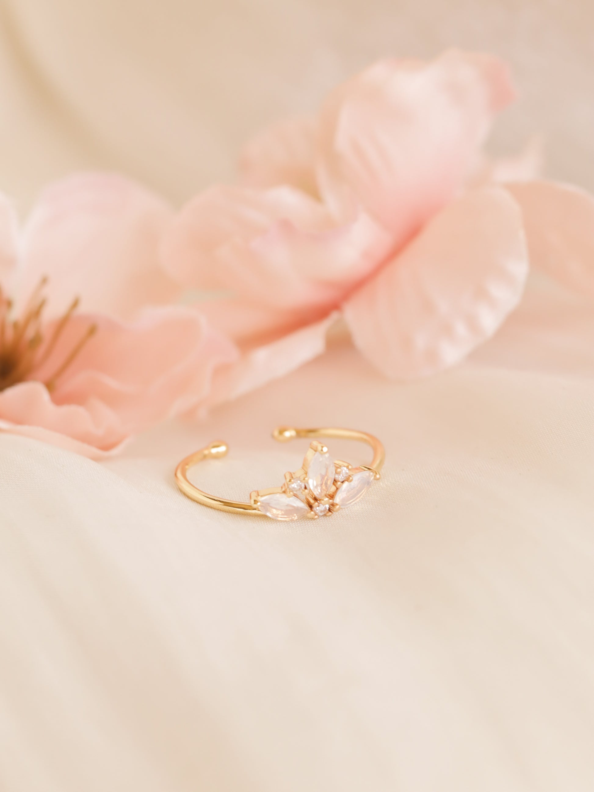This princess ring features opal stones that shimmer with a captivating play of colors. The delicate opals, with their iridescent glow, create a magical, regal look, making it a perfect accessory for adding an enchanting touch to any outfit.