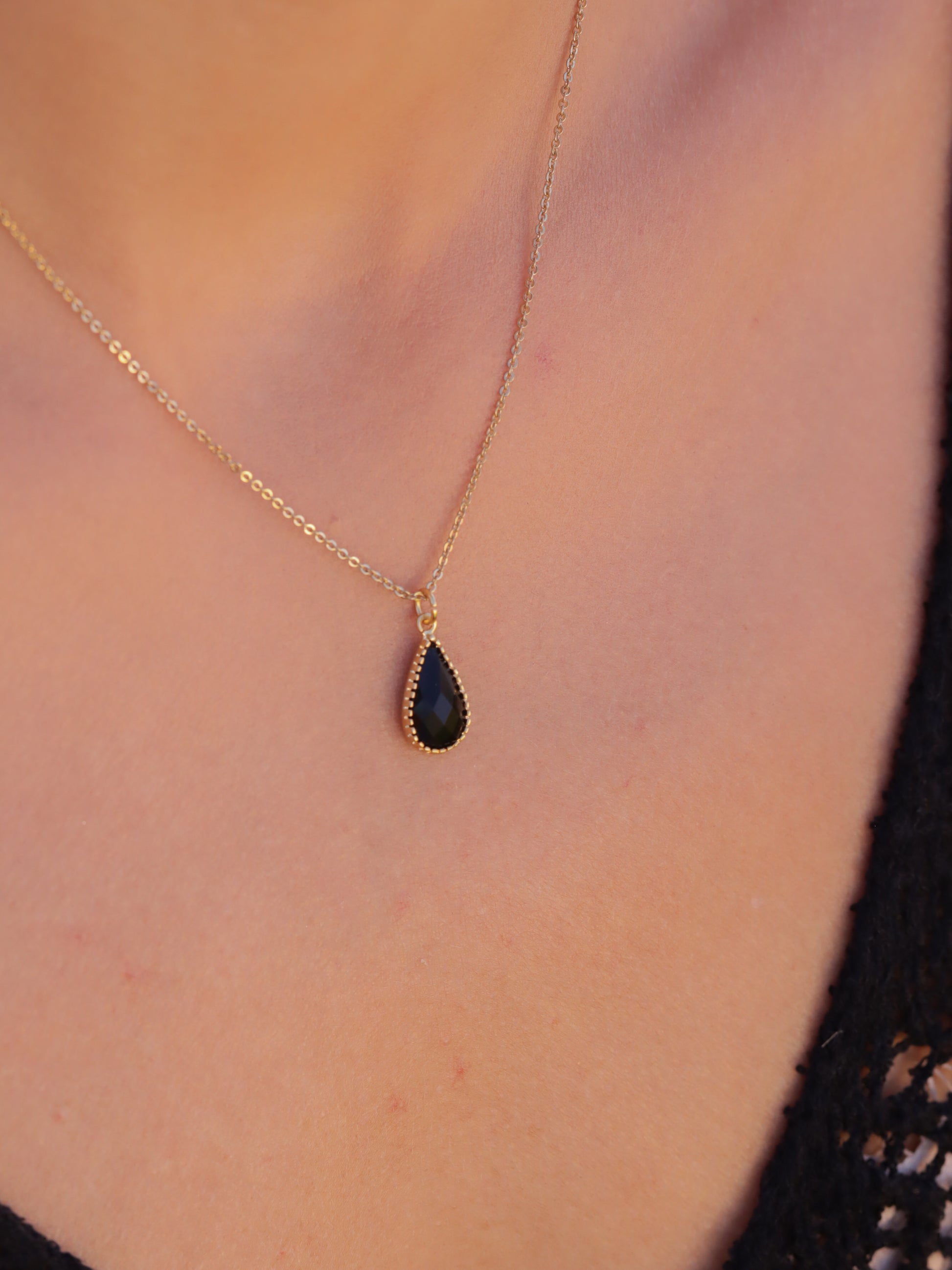 This necklace features a striking black tourmaline stone, designed to make a bold statement with any black outfit. The deep, dark hue of the tourmaline adds a dramatic contrast, making it a perfect accessory for those looking to add a touch of edgy elegance to their look.